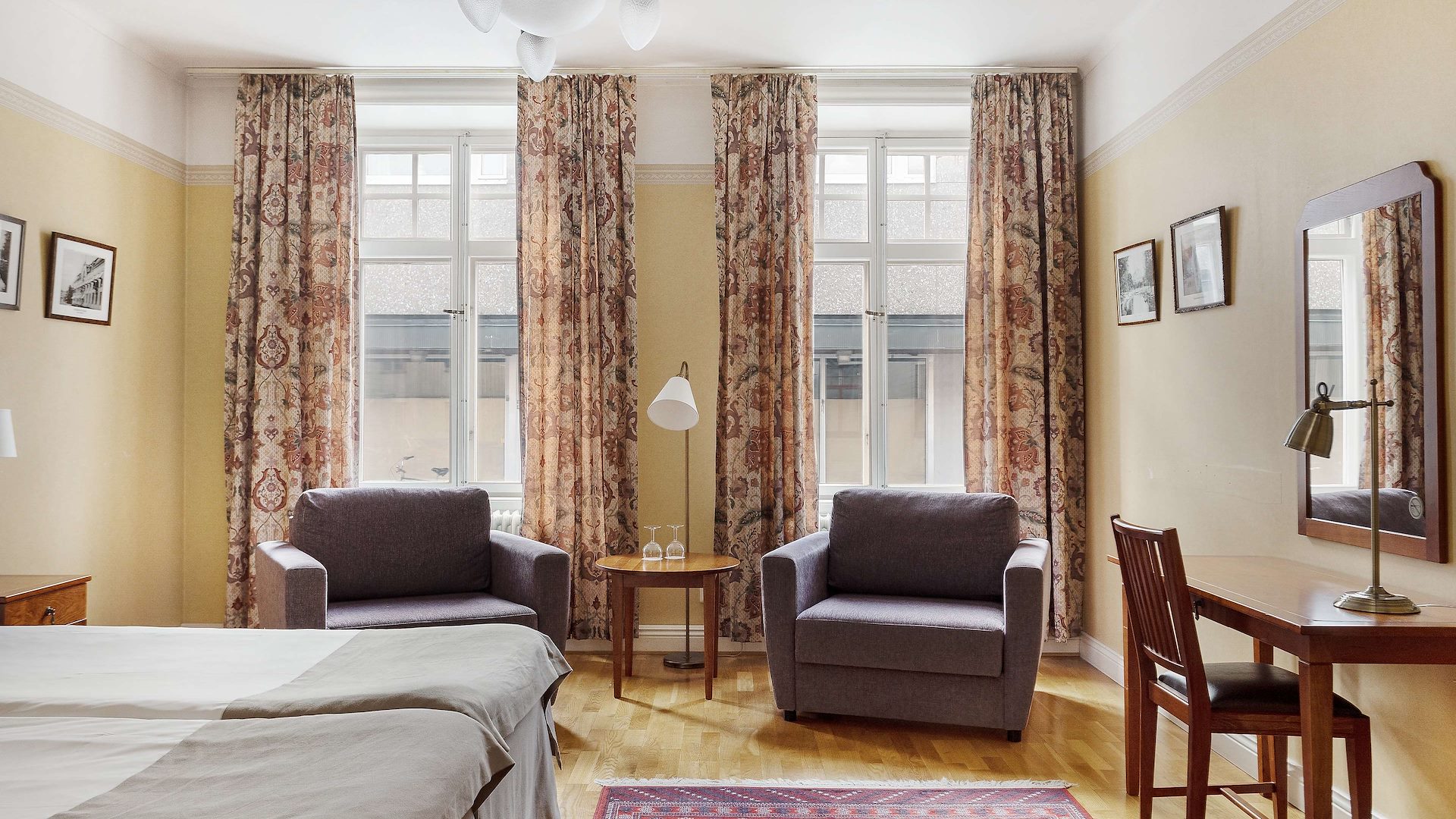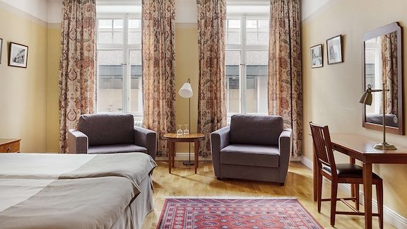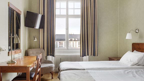 Vi erbjuder handikappanpassade gästrum, standardrum med plats för babysäng samt djurrum.